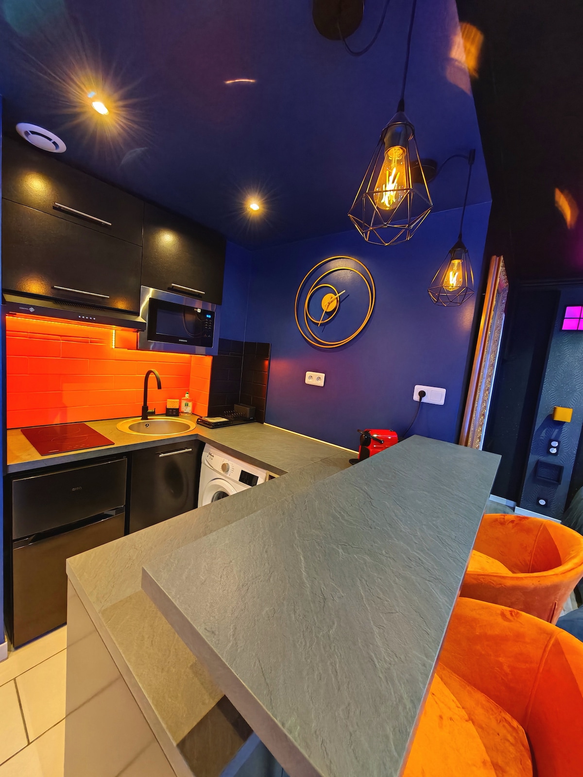Сучасний люкс площею 34 м² у центрі міста Лімож. Він пропонує затишну вітальню, окрему спальню з відеопроектором та гігантський 100-дюймовий екран для кіновечорів (NETFLIX включено), ліжко розміру queen size (160), сучасну ванну кімнату та приватну терасу. Дуже швидке, швидке та стабільне з’єднання Wi-Fi, ідеальне для дистанційної роботи та відряджень. Самостійне прибуття, комфорт і висококласні зручності. Громадська платна парковка поблизу.