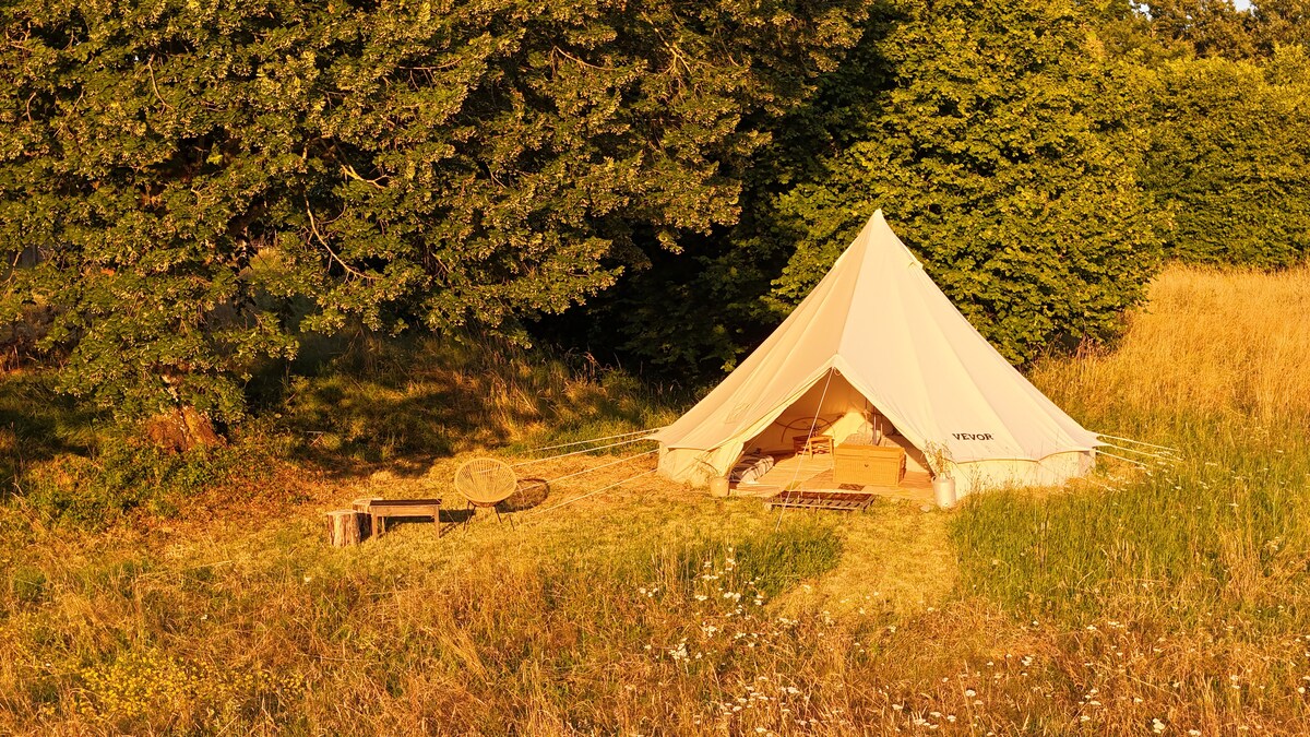 Наш лісовий табір, схований у лісистій долині, порадує вас, якщо ви хочете знову з’єднатися з природою. Комфорт такий, як у лісовому таборі: велике тіпі площею 20 кв. м, двоспальне ліжко, три односпальні ліжка, кухня, камін, африканський душ, сухі туалети. Розкіш тут – це спів тріпотли вранці, сови вночі та журчання струмка. Ви навіть зможете уникнути візитів комарів!