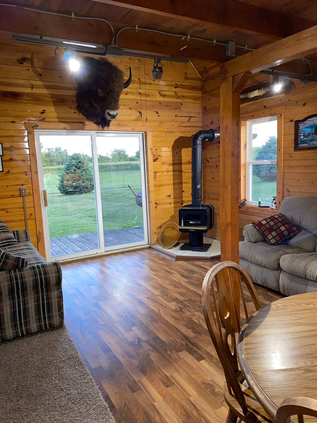 Сільський бревенчатий будиночок на мирній ділянці. Оточений соснами і звуками природи . Унікальний декор, зосереджений навколо білихстих оленів . Тут є невеликий ставок, який можна встановити та відпочити з вогнищем. Затишна сільська місцевість неподалік від річки Вапсіпінікон і зони відпочинку Sweets Marsh.