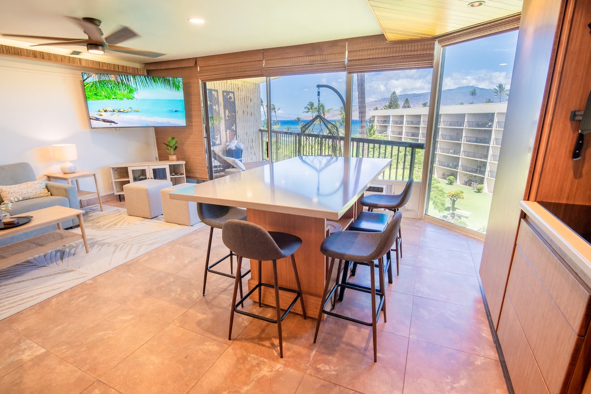 Цей красиво модернізований пентхаус з приголомшливим видом на океан і величні гори розташований в центрі Кіхея, який вважається найкращим пляжем і погодою на Мауї. Ресторани світового класу, модні парки фургонів з їжею та улюблені місцеві місця знаходяться всього в декількох хвилинах ходьби від помешкання. Ви скористаєтеся необмеженою кількістю заходів поблизу або просто відпочиваєте на ланаї та насолоджуєтеся краєвидом? Це ваш дзвінок!