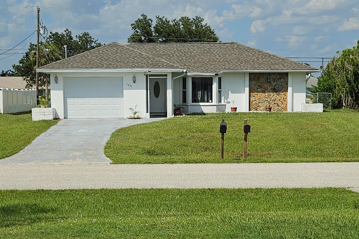 Bring your family and boat to our cozy & quiet Port Charlotte vacation home for a delightful stay close to Charlotte Harbor. Our 3-bedroom, 2-bath home sleeps up to 8 guests. Children and pets can safely run and play in our fenced-in backyard. Fish off our private dock or tie-up your boat and later enjoy a scenic cruise out to the harbor. Short 10 mins drive to Charlotte Beach Park, 13 mins to Sunseeker Resort, 18 mins to Fisherman's Village. Book your fun family and boat friendly vacation now!