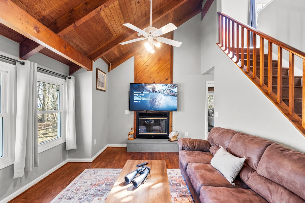 Розташований прямо на воді річки Вікоміко з приватним піщаним пляжем, The River House стане вашим улюбленим місцем відпочинку! Цей повністю укомплектований будинок із 5 спальнями і 3 ванними кімнатами має всі зручності сучасного будівництва (включаючи Wi-Fi), але зберігає вінтажний шарм оригінального помешкання. Акра+ ділянка дуже приватна з вражаючим видом на ліс і воду. Весело можна знайти в будь-якому напрямку та для будь-якого віку! Тут є два комбо ліжка/ванни на нижньому поверсі, а також казковий спальний лофт для дітей!