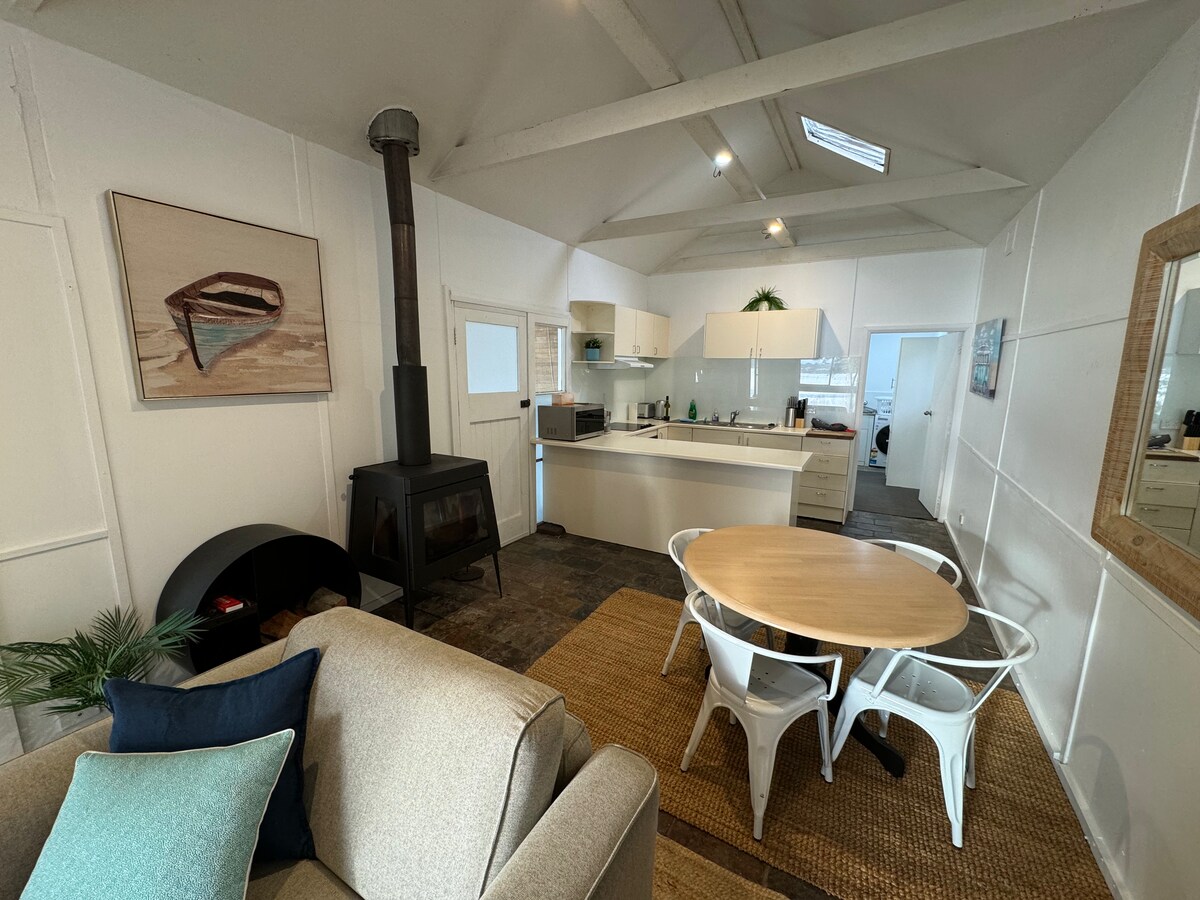 A stroll from the beach and nestled amongst the trees, our sweet seaside studio is filled with treasures we have collected along the way. The Collectors Studio is a unique, eclectic space designed for couples or solo travellers to have a relaxing few nights away. Its the perfect summer or winter getaway with our old wood burner fireplace and clawfoot bathtub to keep you cosy in the cooler months, and Blue Lagoon Beach only 1 block away to enjoy in the warmer months!