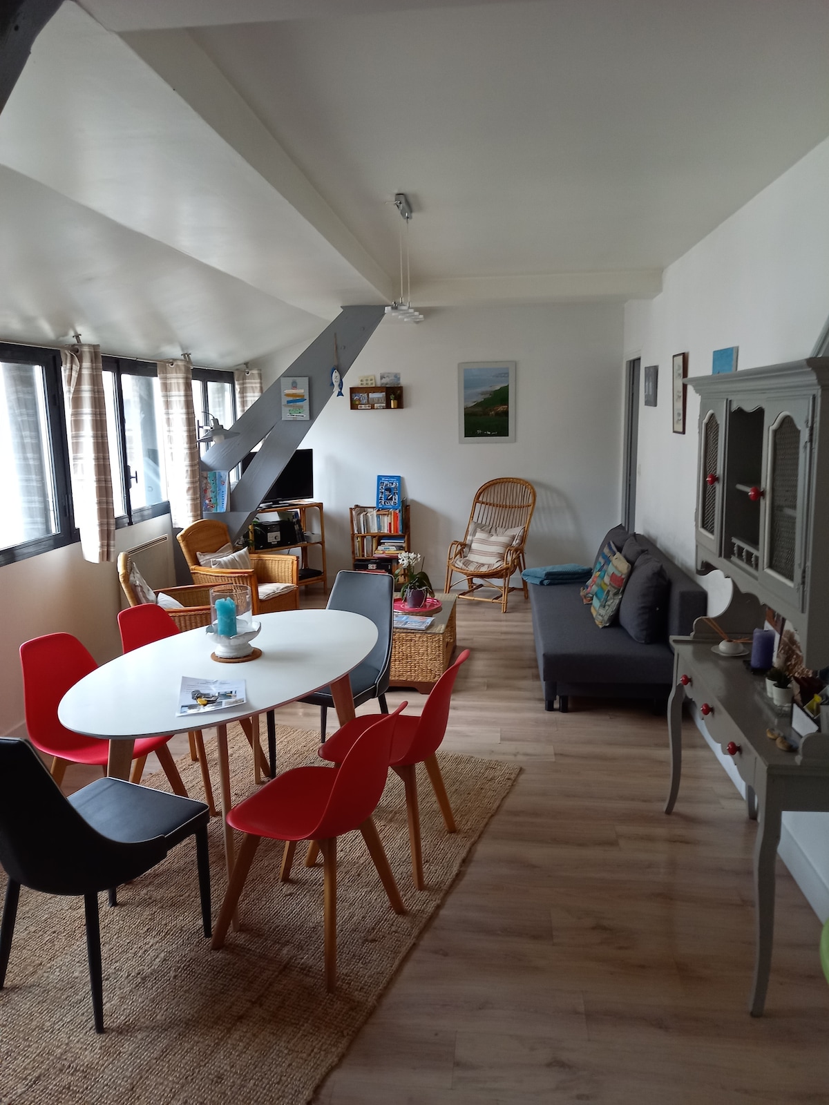 Чудова квартира площею 50 м2 з кухнею, відкритою у вітальні з великими шафами, скляним дахом, 2 декоративними камінами, включаючи один у рожевому мармурі та його автентичний паркет. З пляжними стільцями та парасолькою обладнано всім необхідним для комфортного відпочинку😎. Білий крейда, де ідеальне місце між пляжем і містом, щоб провести незабутній момент : одна вулиця від пляжу і ванни : відомий центр талассотерапії з відкритим басейном морської води, обігрітим цілий рік.