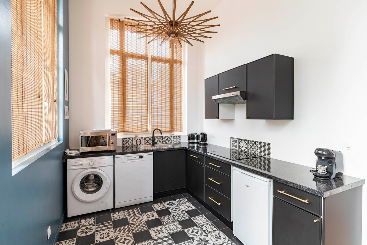 Насолоджуйтеся перебуванням у цьому чарівному дуплексі, розташованому в жвавому центрі Дьєппа, прямо навпроти культового кафе Café des Tribunaux. Щосуботи вранці ринок, який у 2020 році отримав нагороду «Найкрасивіший ринок Франції», наповнює вулицю барвами та життям. Пляж розташований усього за кілька кроків, а до залізничного вокзалу можна дістатися менше ніж за 10 хвилин пішки. Це помешкання розташоване на 3-му та 4-му поверхах колишнього рибальського будинку й має сонячну терасу в спальні, яка ідеально підходить для бранчу, читання або спостереження за чайками.