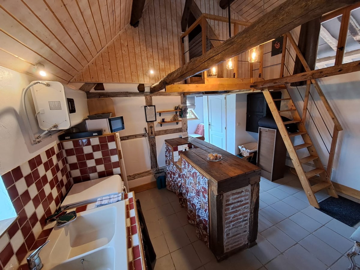 Мебльована в старій вівчарці, розташованій посеред бурбонського бокажу з безперешкодним видом на сільську місцевість. Спокійне місце. Перший поверх: обладнана кухня (духовка, мікрохвильова піч, індукційна, витяжка, посудомийна машина), відкрита до вітальні. Вітальня (телевізор), швидкий диван (2 особи). Мезонін зі спальною зоною (2 особи), спальнею (ліжко 2 особи) , кондиціонером на першому поверсі. за додаткову плату та за запитом: постільна білизна, туалет, прибирання та прибирання в кінці перебування. БЕЗКОШТОВНИЙ WI-FI.