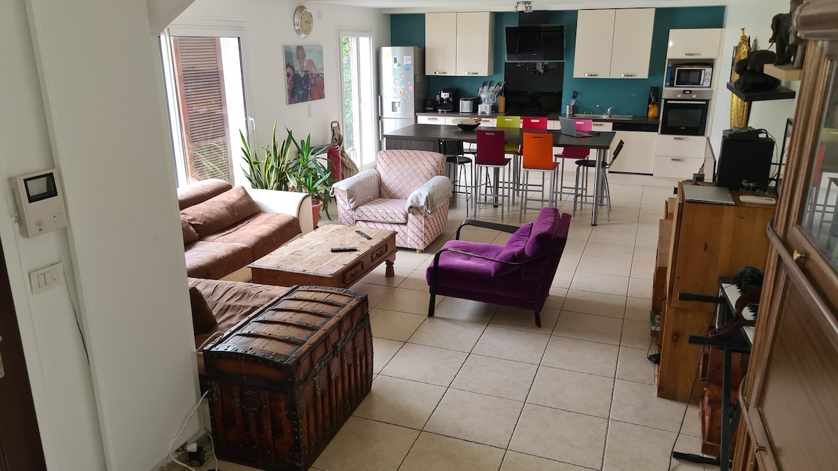 На краю лісу Мейдон між Версальським палацом і Парижем - окремий будинок площею 80 м2 на 2 рівнях. 3 спальні, 2 ванні кімнати, 3 двоспальні ліжка, обладнана кухня, все комфортно зі спільним доступом до саду з власниками. Три станції дозволяють дістатися до всіх пам 'яток Парижа за кілька хвилин, а місце роботи - дуже швидко. Ставок, дитячий ігровий майданчик та скелелазіння неподалік. Будинок недоступний для PRM Мови: англійська та італійська