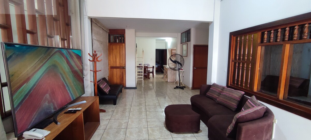 Красива, сучасна та простора квартира площею 110 квадратних метрів у сімейному кондомініумі, кутовий і з частковим панорамним видом на місто та аеропорт Тарапото. Ідеально підходить для однієї пари або чотирьох осіб, а також з великим простором, щоб додати ліжко. ВАЖЛИВО : - Вказана ціна не включає кондиціонер, ця вартість має додаткову плату в розмірі 15,00 S/за ніч, лише за необхідності.