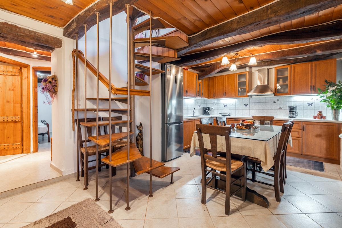 Цей будинок на сонячній енергії, оточений оливковими деревами та з захватывающим панорамним видом, не перестане вас здивувати! Кухня і вітальня не розділені жодною стіною, і це створює відкрите і комфортне середовище. Ми вирощуємо нашу їжу органічним шляхом і маємо 8 курей і 2 кіз, які забезпечують нас свіжим молоком і яйцями щодня. Тому не витрачайте свій час на переповнені курорти та нудні квартири. Приходьте до нас додому, познайомтеся з нашими чарівними козами та відкрийте для себе щось нове!
