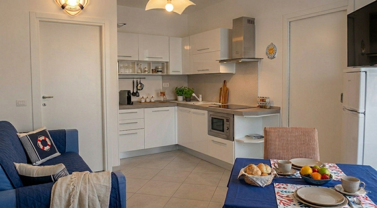 ВІДПОЧИНОК, МОРЕ, ПРОГУЛЯНКИ ТА ПРИВАТНІСТЬ. 4 ліжка – кондиціонер/опалення – Wi-Fi, паркувальне місце, приватний сад – знижки на квитки на човен. Простора та затишна квартира складається з вітальні з міні-кухнею та диваном-ліжком (два ліжка) на 2 особи, спальні та двох ванних кімнат із душем. У помешканні є смарт-телевізор, пральна машина, кондиціонер, опалення, паркувальне місце, Wi-Fi та великий двір із перголою для обідів на свіжому повітрі. ПОПРОСІТЬ ЗНИЖКИ ТА ПРОПОЗИЦІЇ