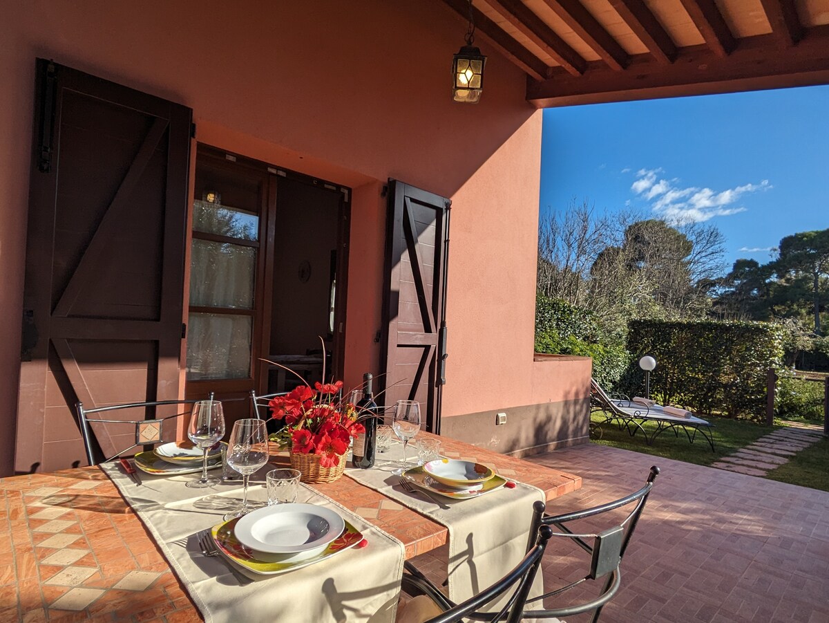 Гарна студія, розташована на першому поверсі, з прибудинковою територією всього в декількох хвилинах від пляжу Марина-ді-Кампо, посеред природи. Це частина типової тосканської вілли з висококласним оздобленням, має: двоспальне ліжко, сейф, посудомийну машину, телевізор, ванну кімнату, WI-FI, пральну машину, душ на відкритому повітрі, паркування, електричні ворота, сад, ґанок. Басейн і джакузі відкриті з квітня