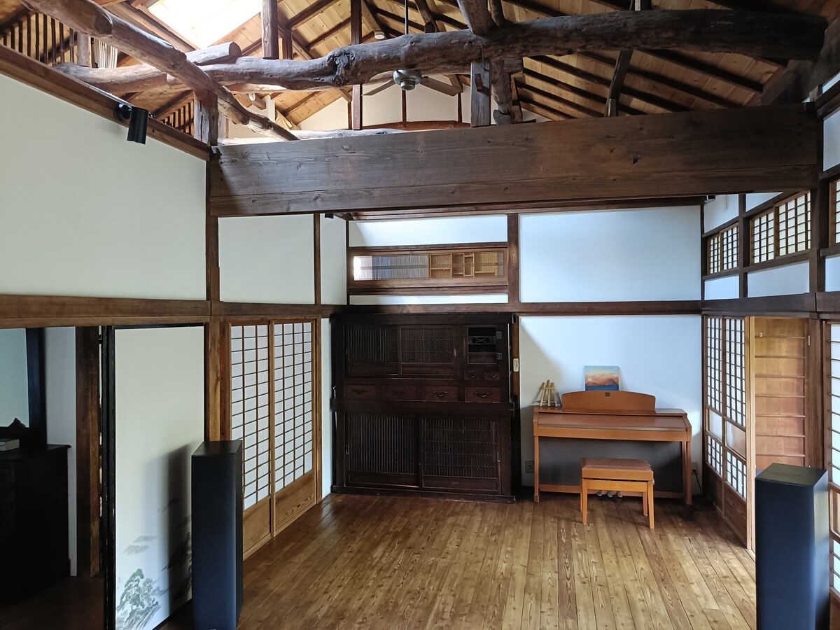Це розслаблюючий 4LDK у чистому будинку в японському стилі. Це окреме помешкання зі спокоєм. Це також приємно для тих, хто повертається додому дистанційно або тимчасово за кордон. Кімната в японському стилі зі спокійною вітальнею та садом у японському стилі.На другому поверсі розташована кімната в японському стилі з 8 килимками татамі, кімната в японському стилі з 4 з половиною татамі татамі та кімната в західному стилі 9-татамі з фортепіано з видом на море.Як щодо краєвиду на море, насолоджуючись чаєм із верандою. У помешканні багато кімнат, тому, будь ласка, насолоджуйтеся повсякденною подорожжю з сім 'єю та друзями.Це тихий і спокійний будинок, де можна насолоджуватися писанням і читанням. На кухні є кухонний обігрівач IH, електрична каструля, рисоварка, холодильник, мікрохвильова піч, тостер, панелі, посуд та інші предмети першої необхідності. На веранді на 2-му поверсі є пральня та велике сушильне приміщення. Ванна кімната має великі вікна та високу стелю, і це приємний простір.Також доступні такі зручності, як зубні щітки, кришки для ванни та бавовняні набори. Якщо власник зустрінеться з часом, ми заберемо вас на вокзалі, коли ви прибудете.