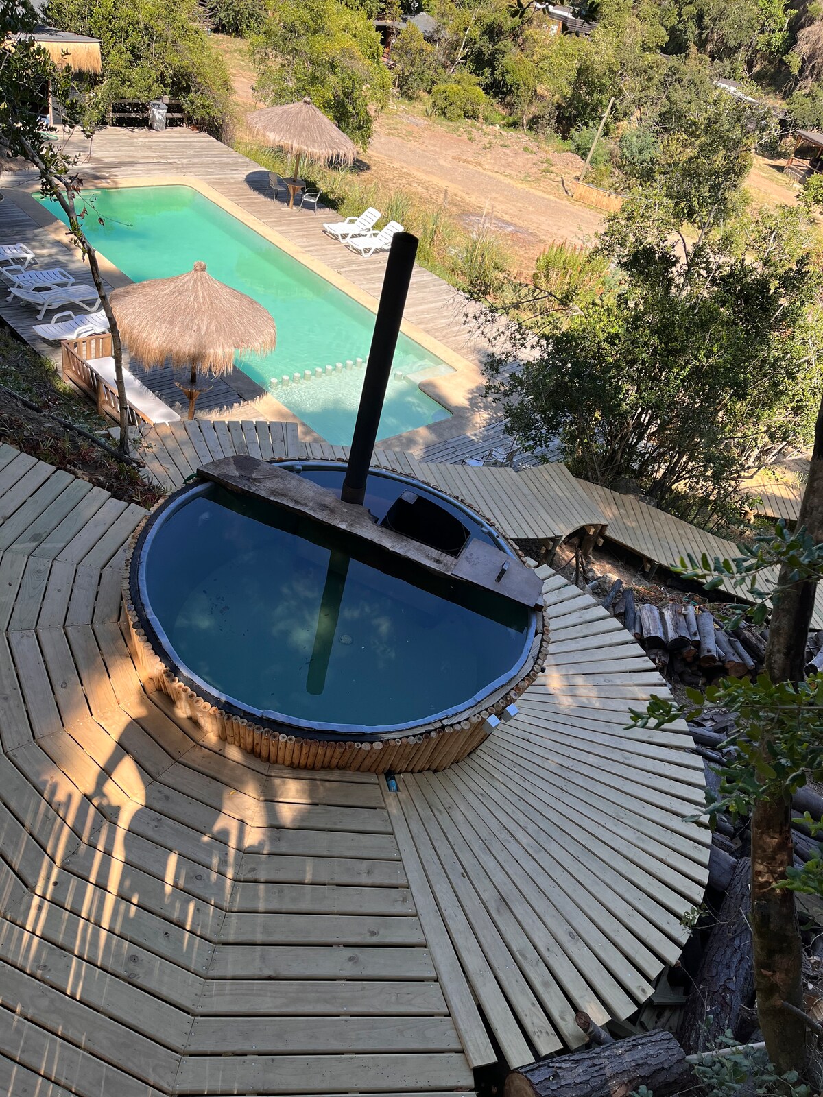 Цей зруб на 2-3 осіб є одним із трьох у помешканні на набережній площею 2,5 акра у фьорді в чилійській Патагонії, озерний регіон. Це повністю обладнана студія з власною дерев 'яною гідромасажною ванною на дровах посеред красивих місцевих дерев і видом на фьорд зі постійно мінливими припливами. Ідеально підходить для тих, хто шукає спокійного, підзарядного, спокійного перебування посеред природи з сучасним обладнанням і всіма зручностями, необхідними для комфортного перебування.