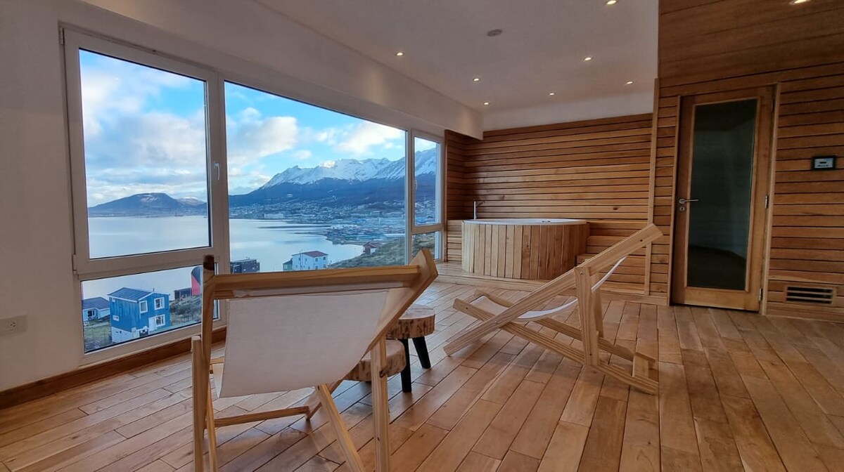 Живіть у квартирі «Cielo» у висококласному комплексі Beagle Suites: ваш 5-зірковий Luxury Nature Getaway від Ushuaia, оцінений Airbnb, розташований серед 10% найкращих помешкань у світі та улюблений серед гостей. Шукаєте незабутні враження від розміщення? Ласкаво просимо до «Cielo» у Beagle Suites, де комфорт і розкіш зустрічаються з найдивовижнішою природою!