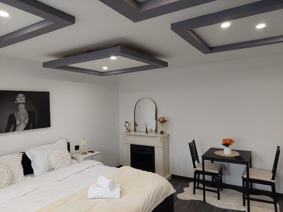 Ласкаво просимо до нашої унікальної квартири-студії недалеко від центру міста. У нашій квартирі було велике дзеркало, яке не лише додає глибину кімнати, але й створює ілюзію безмежного простору. Дивлячись вгору, заворожуйте чарівні світлодіодні світильники, вбудовані в стелю, які м 'яке сяйво створюють ідеальну атмосферу для будь-якого випадку. Ці стельові світлодіоди додають до вашого враження вишуканості та тепла. Обіцяємо незабутній відпочинок у місті.