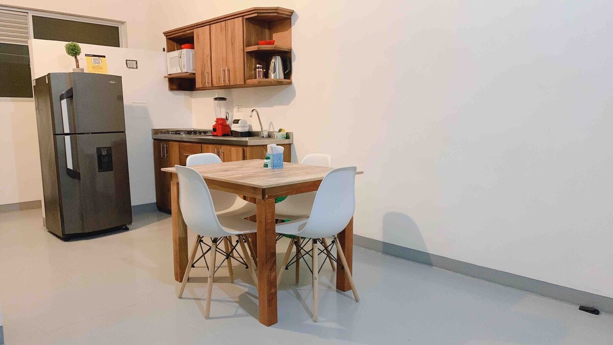 Apartamento completo y nuevo a su disposición, tranquilo, fresco, frente al Gimnasio de CrossFit y a 10 minutos del centro. Cuenta con una (1) cama doble, 2 camas sencillas, cocina integral, refrigerador, lavadora, habitación principal con baño privado, habitación secundaria, sala amplia, baño social y balcón. A pleasure to welcome you!