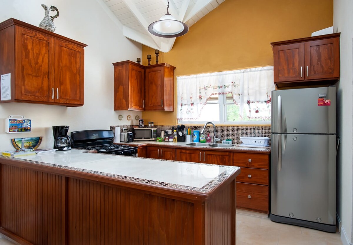 Просторий і повністю кондиціонований будинок з 2 спальнями/2 ванними кімнатами зручно розташований у Дуврі, за декілька кроків від курорту Sandals і популярного пляжу Дувр. Існує суміжна квартира-студія, яку можна орендувати окремо або разом із будинком. Усі помешкання нові, а декор сучасний і тропічний. На території є парковка, є велике патіо та тіньовий задній сад. Ви всього в декількох хвилинах ходьби від кількох барів, ресторанів, продуктових магазинів та автобусного маршруту.