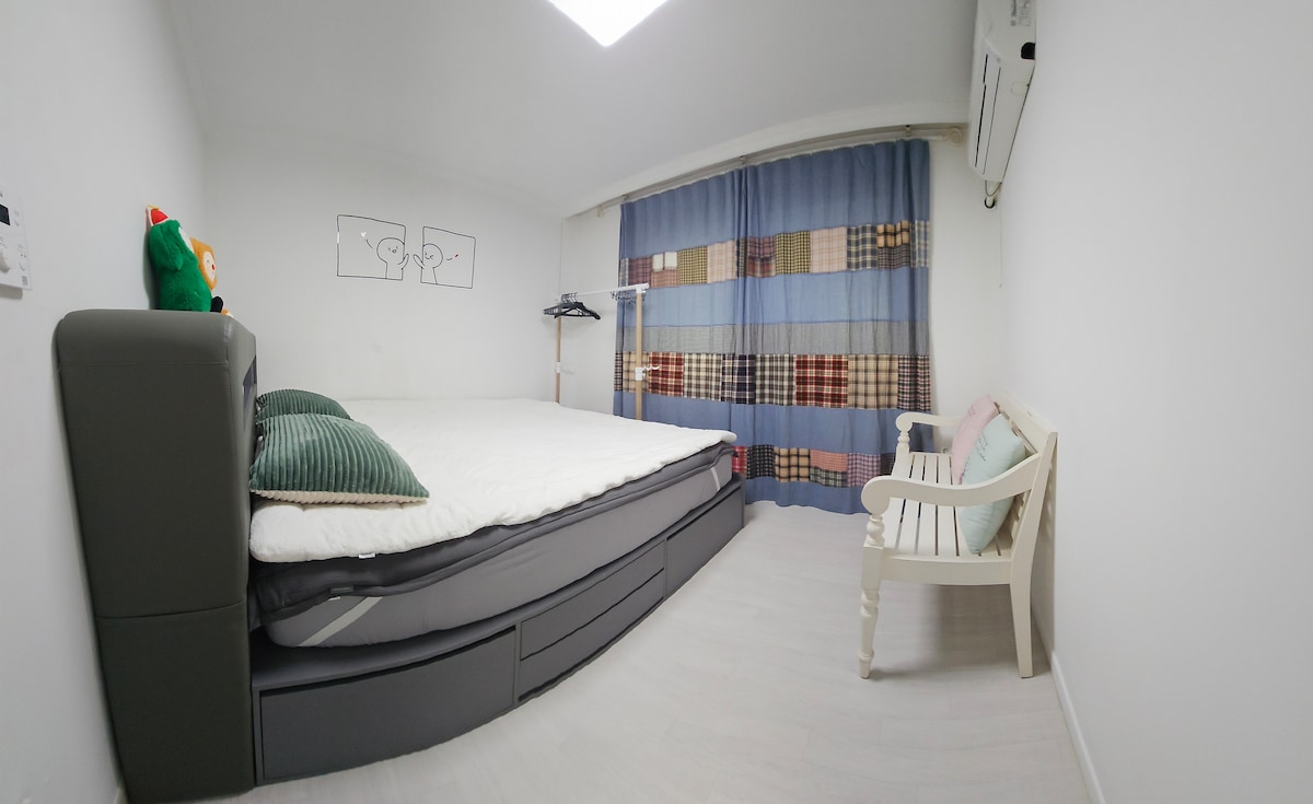 *******#레고랜드 #삼악산 케이블카 #육림랜드 #청평사 #남이섬 ******* 남춘천역 도보 7분 인근 대형마트와 공지천,먹자골목,24시 카페,와플대학, 노래방 걸어서 2분거리 CU, 뚜레쥬르, 파리바게트, 배스킨라빈스, ATM(농협,신한,KB,새마을금고) -럭셔리한 외관, 깔끔하고 심플한 내부. -채광 좋고 조용한 숙소. -수시로 코로나 방역 진행. -게스트 하우스 내 물건 훼손 시 벌금 적용 가능: 배달 음식 불가능: 애견 동반, 큰 소리, 흡연(건물 앞에서 흡연 가능) 흡연, 취사 불가합니다 경보작동울림 침실 1개(퀸사이즈 침대1), 거실 1개, 화장실 1개산