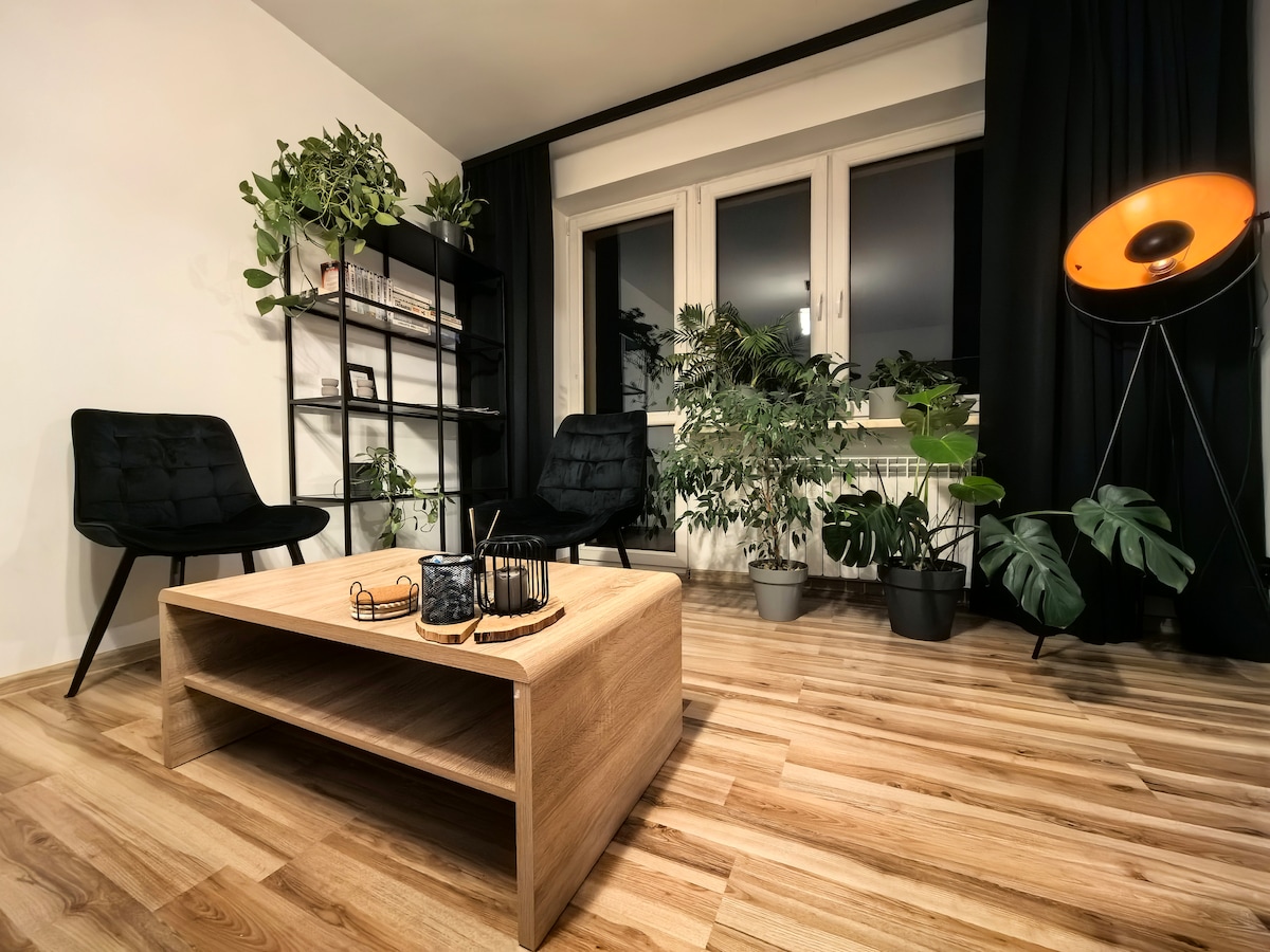 Запрошуємо вас до квартири Brzezina, розташованої на головній виїзній дорозі, що робить її чудовим вибором для бізнес-мандрівників і пар, які шукають комфортне місце для перебування. Ця 34-метрова квартира поєднує в собі функціональність, сучасний дизайн і комфорт.