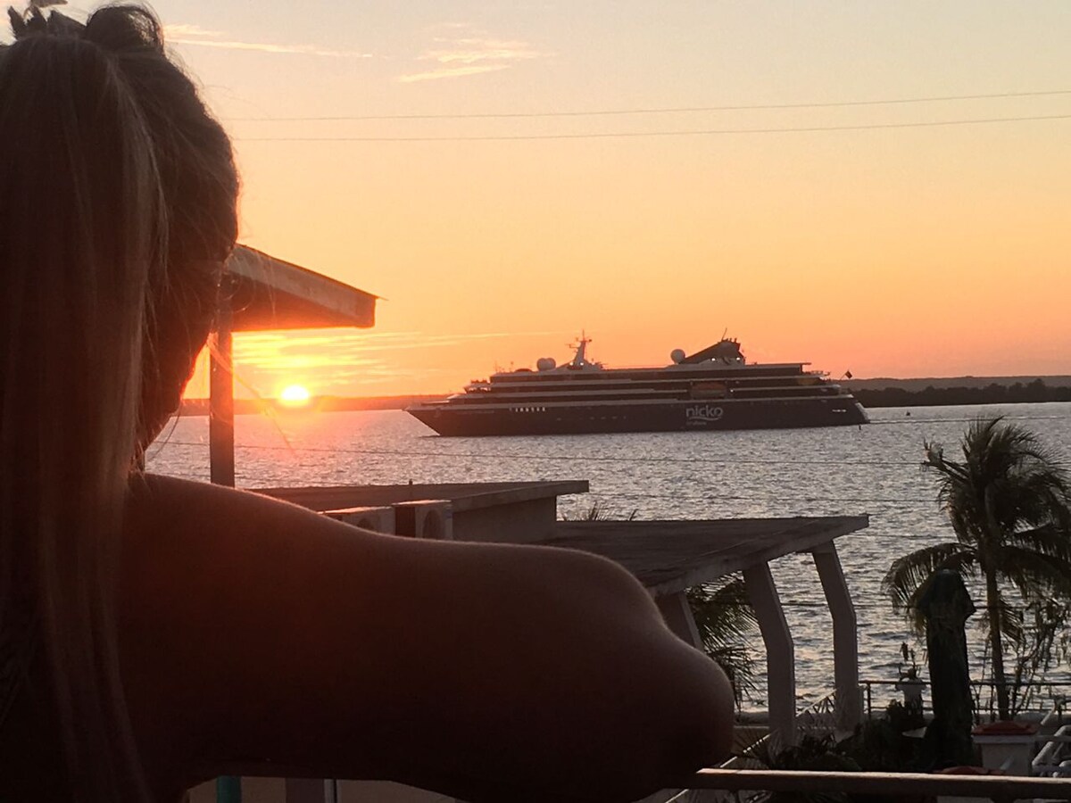 Amaneceres increíbles con un café recién hecho hará su estancia inolvidable.Vista al mar se encuentra en la avenida principal en la zona turística de la ciudad Punta Gorda, justo al lado del mar. La habitación es segura y confortable, la casa tiene una gran terraza al lado del mar con hamaca y cocoteros, no playa. Estamos sólo a 3 km del centro histórico Patrimonio de la Humanidad.Puede beber todo tipo de cocteles, frutas frescas y solicitar su cena favorita.Queremos que se sienta como en casa.
