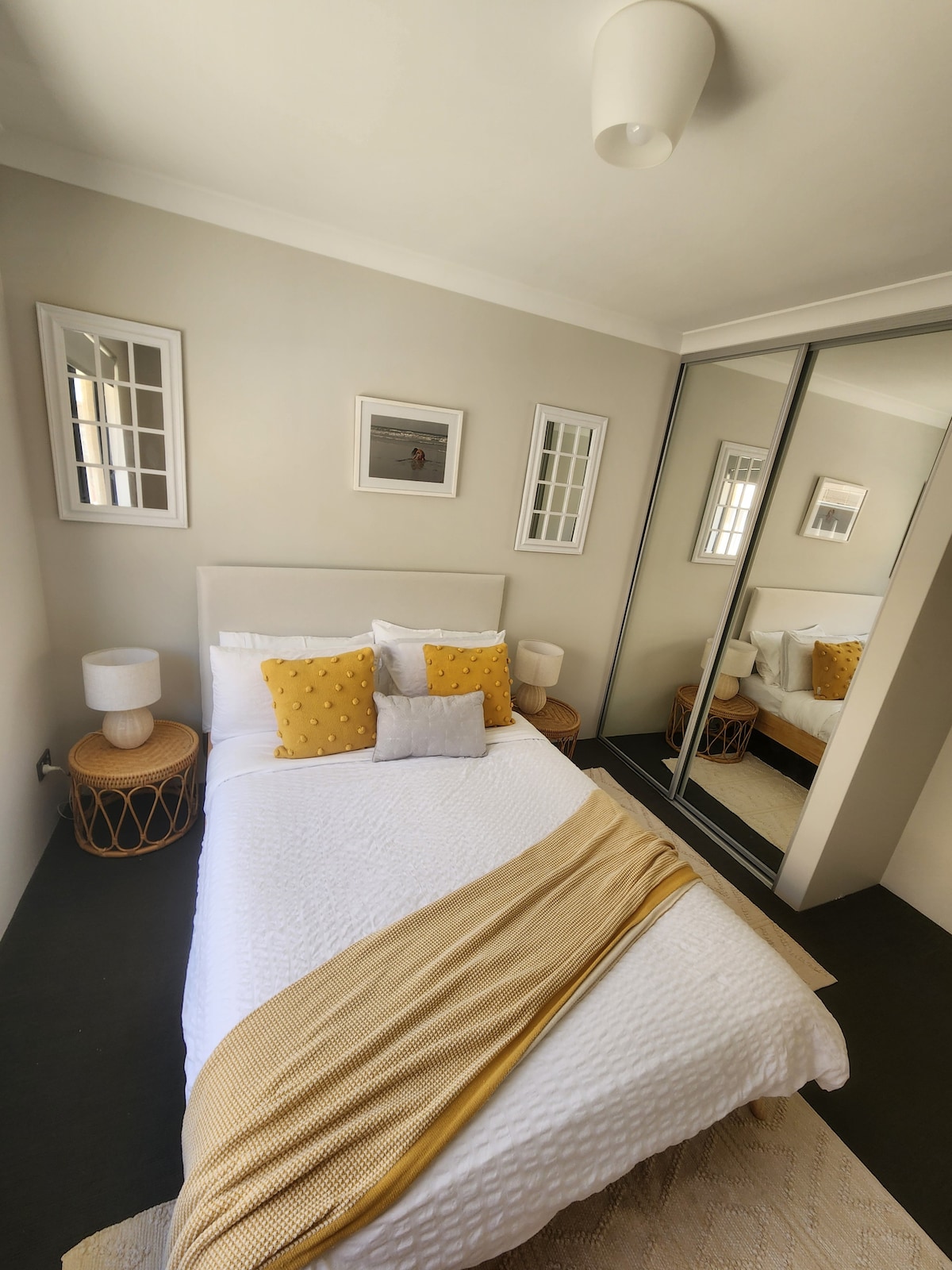 2 хвилини до кафе, ресторанів, ресторанів і Південного пляжу. Повністю кондиціонер, прекрасна велика спальня, світла вітальня та прекрасна глибока ванна кімната для 2 осіб. Ви навряд чи знайдете більшу, більш простору, більш приватну квартиру з однією спальнею. Він професійно прибирається для кожного візиту - ми вже 15 років займаємося розміщенням у Південному Фрімантлі - тому ви отримаєте особистий досвід Airbnb з гарантією належного догляду та прибирання квартири. Немає сюрпризів на Airbnb.