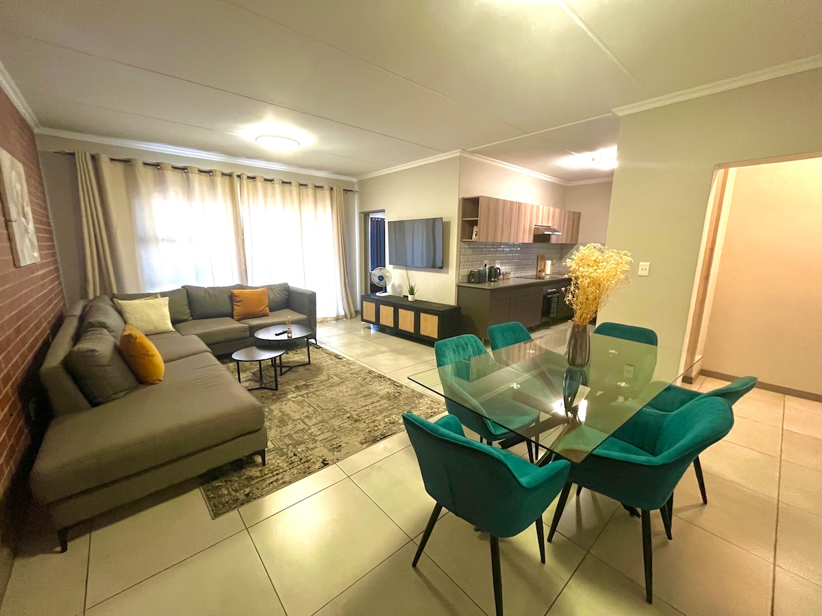 Your Jozi Hideout Kick off your shoes and relax in this stylish apartment in a secure, leafy estate. Whether you're in Joburg for business or vibes, this spot is your perfect home. Just 12 mins from OR Tambo, a quick drive to Edenvale, Greenstone Mall, Fourways Market, Sandton and more with easy access to highways and Jozi hotspots. Estate features a spa, laundry & dry cleaning, on-site restaurant (they show the game!), sparkling pool and game room. Come stay, play and soak up the Jozi magic!