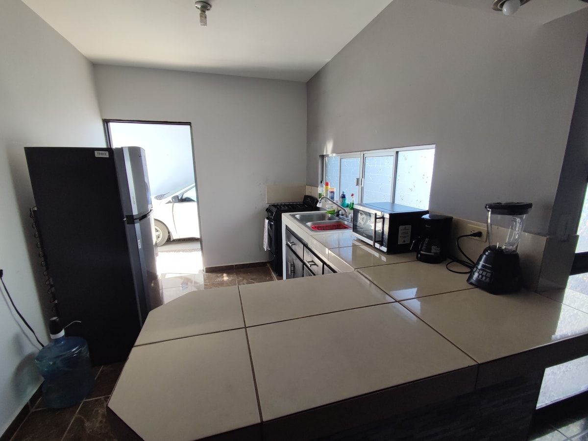 Diviértete con toda la familia en este alojamiento con todas las Comodidades. *Aire acondicionado en cada recamara y Comedor *Smart Tv 40 pul en Sala *Boiler eléctrico *Cisterna de Agua *Completamente amueblada, Lavadora, refrigerador, estufa, cafetera, horno de microondas, licuadora y utensilios de cocina.