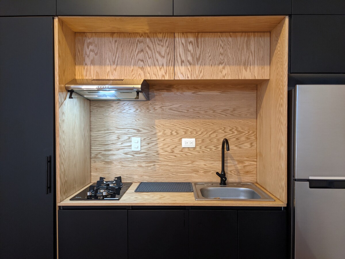 Кімната-студія з власною кухнею та їдальнею. Ідеально підходить для пар і бізнес-мандрівників у приватному, безпечному та тихому районі. 500 метрів від торгових центрів, супермаркетів, ресторанів, банків і тренажерного залу. ¡Усе в межах досяжності! 🏥 Imss Clinica 66 5 '. Американський ✈️ аеропорт і 🏢 консульство - 10 хвилин на автомобілі. ✅Самостійне прибуття та гнучкі години роботи. 💥Знижки на довготерміновібронювання 💥