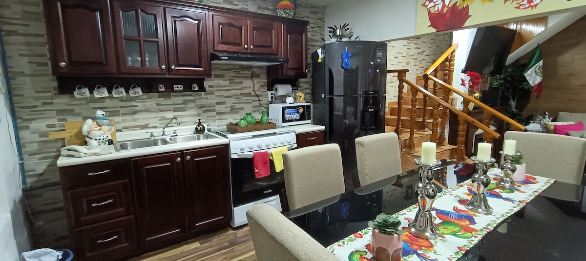 Відчуйте себе в ЗАМІСЬКОМУ БУДИНКУ в Мехіко Маленький, красивий дизайн, затишний, дуже тихий будинок, повний рослин. НА АВТОМОБІЛІ: 10 хвилин від терміналу 2 АЕРОПОРТУ CDMX і 15 хвилин від Термінал 1 (залежно від трафіку); 10 хв від ФОРУМУ GNP та ІПОДРОМУ; 15 хв від ПАЛАЦУ СПОРТУ; і 5 хв від МЕТРО Pantitlán (з'єднує 4 лінії) ПІШКИ: 10 хвилин до станції метро «Агрікола Орієнталь» і 5 хвилин до пляжу (називається «Олімпійський») Паркування всередині будинку, ринки та місця, де можна поїсти, дуже близько.