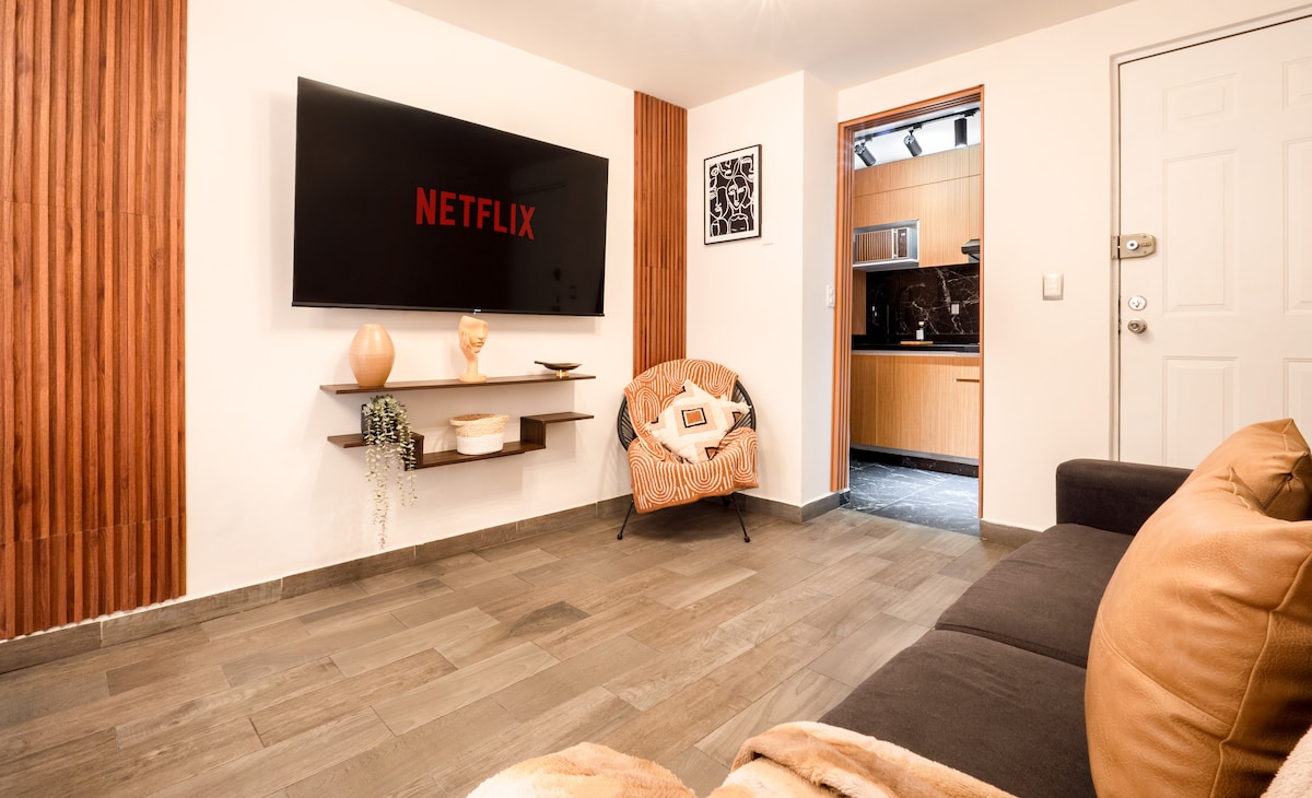 Новий лофт у сучасній будівлі перед Аламеда-Сентрал, ідеально підходить для двох осіб. До послуг гостей 50-дюймовий телевізор, ліфт, кухня з мікрохвильовою піччю, власна ванна кімната та Wi-Fi. Всього в 10 хвилинах від історичного центру та недалеко від таких культових місць, як Палац образотворчих мистецтв, Латиноамериканська вежа та музеї. Ідеально підходить для комфортного, центрального та стильного перебування в Мехіко.