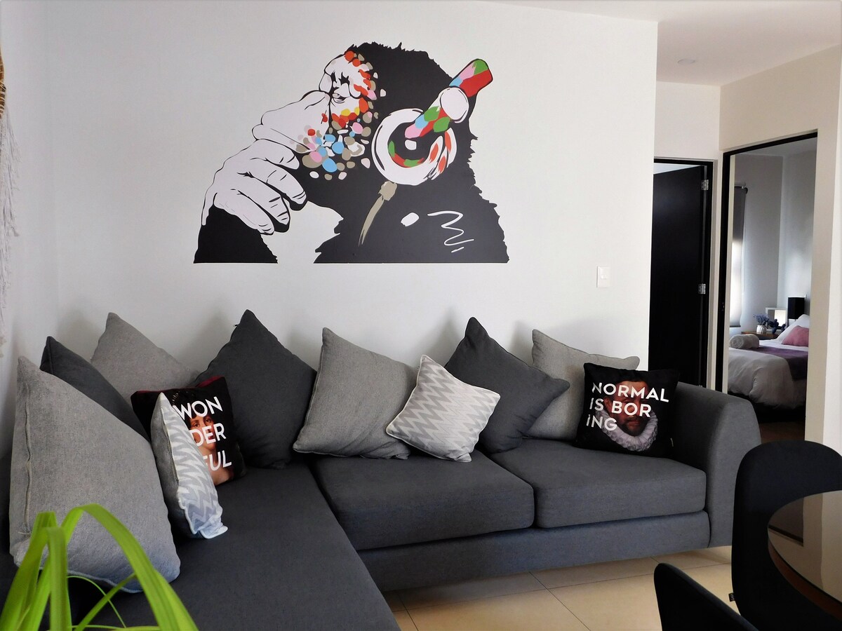 Ласкаво просимо до нашої абсолютно нової, повністю обладнаної квартири! Ідеальне місце для спокійного, затишного та комфортного перебування для груп до п 'яти осіб. Наше чудове розташування знаходиться всього в декількох хвилинах ходьби від міжнародного аеропорту CDMX, Foro Sol, Hermanos Rodríguez Autodrome, Palacio de los Deportes та стадіону Diablos Rojos. З цілодобовим спостереженням, спільною парковкою, ліфтом та всіма зручностями для приємного перебування. Бронюйте сьогодні!