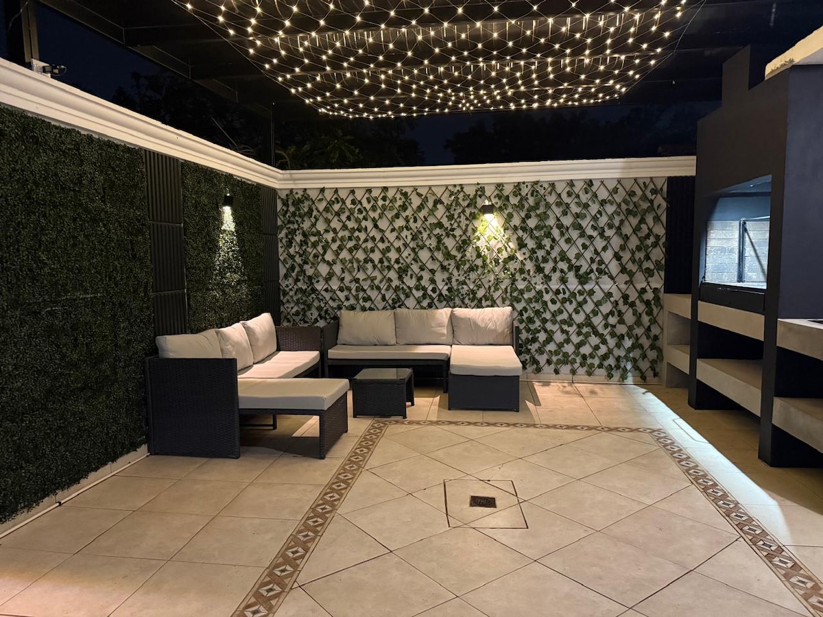 Просторий і комфортабельний будинок у приватному, закритому районі, що підходить для сімей. У кожній кімнаті є письмовий стіл для роботи, Wi-Fi, Netflix та кабельне телебачення в головній спальні, вітальні та кухні, великий сад та зона для барбекю, крита парковка для одного автомобіля та місце для ще двох. Також є два резервуари для води та система водопостачання, а також еліптичний тренажер. У помешканні заборонено перебувати з домашніми тваринами та курити. Магазин і аптеки знаходяться в одному кварталі. Поруч розташовані супермаркет і ресторани.