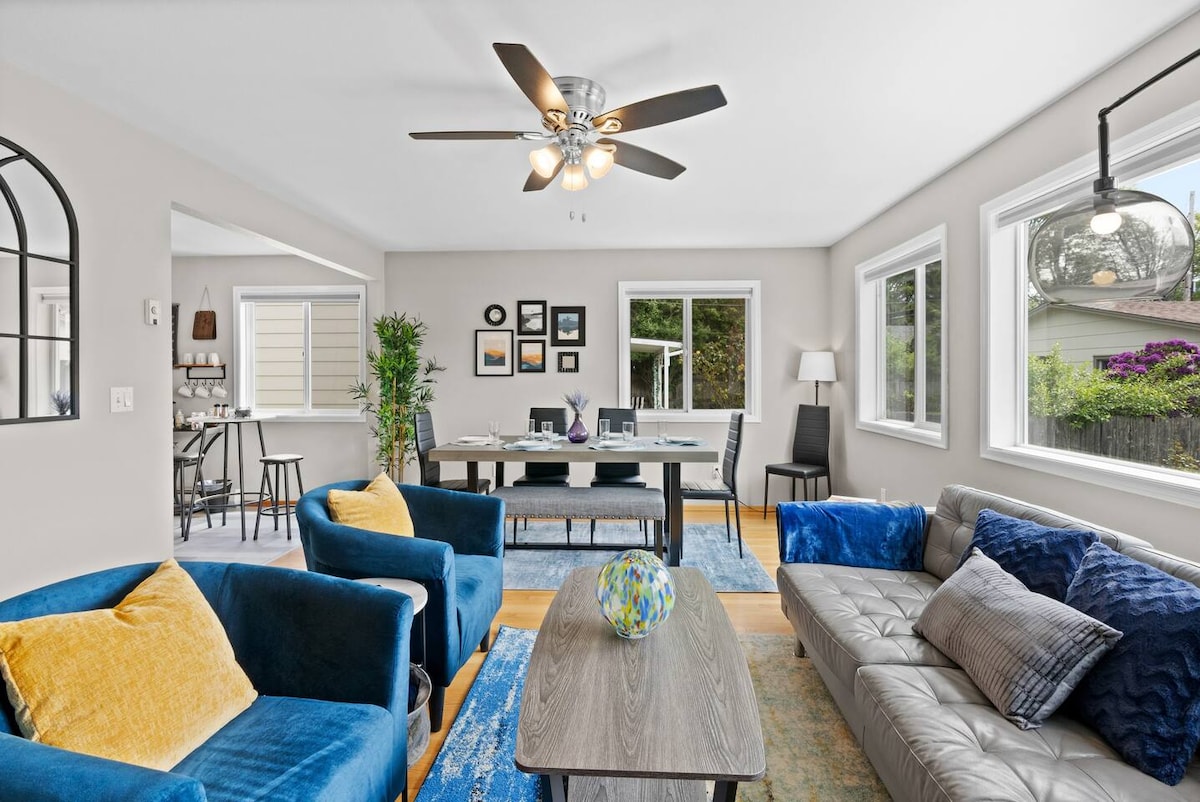 Ласкаво просимо до The Sunset Cottage, нещодавно відремонтованого та професійно оформленого помешкання з 4 спальнями / 2 ванними кімнатами, призначеним для сімей. Розташований у тихому районі всього в кількох кварталах від центру Порт-Анджелеса, гості зможуть легко дістатися до Hurricane Ridge, Black Ball Ferry, Олімпійського національного парку, продуктових магазинів та безлічі ресторанів. Наш спокійний будинок, обладнаний великою кількістю зручностей (включаючи сітчатий Wi-Fi), є ідеальним місцем, щоб відпочити, розслабитися і насолоджуватися всім, що може запропонувати PNW.