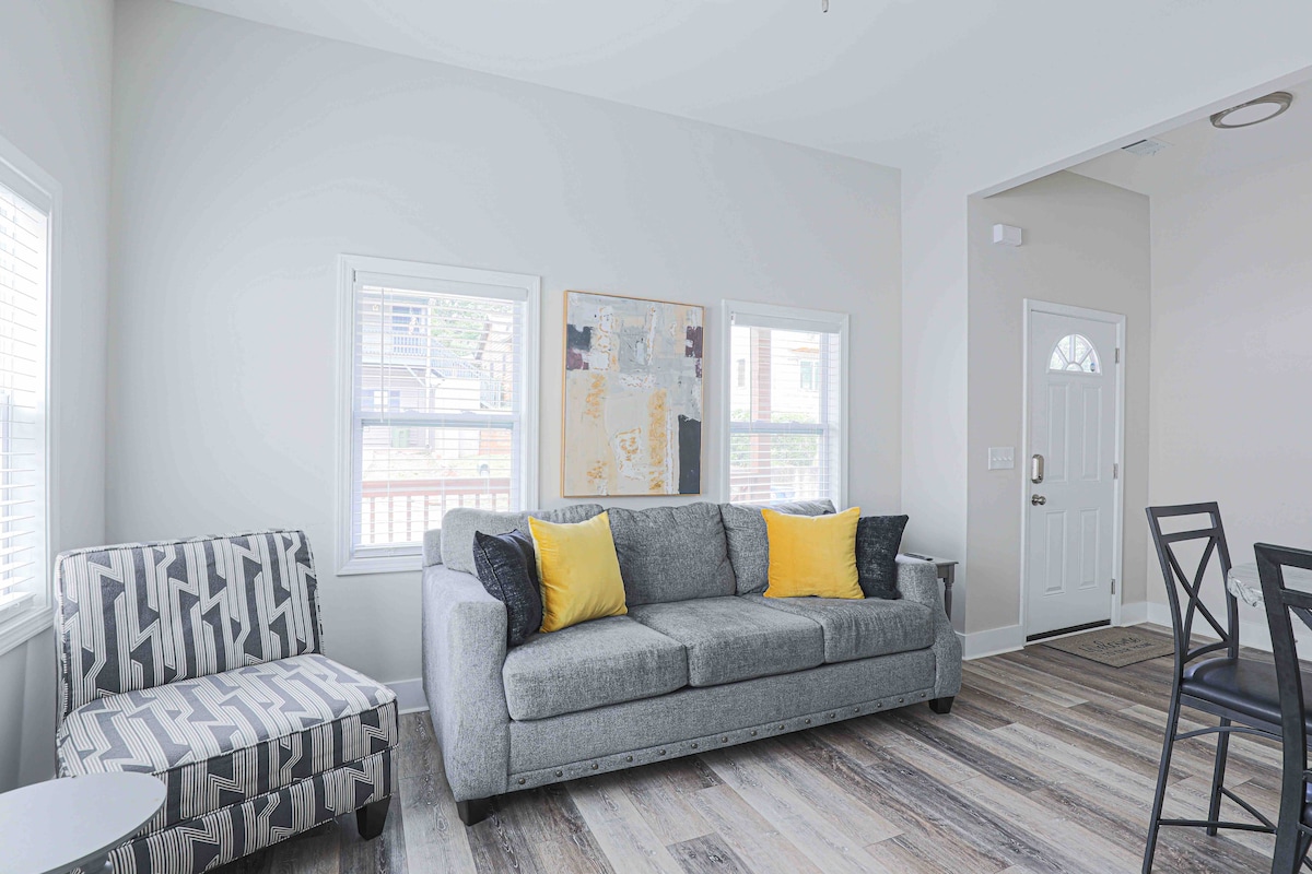 Ласкаво просимо до вашого помешкання в Каслберрі-Гілл – світлого кондомініуму в стилі лофт, розташованого всього за кілька кроків від енергетичного та культурного центру Атланти, який пропонує комфорт і зручність під час вашого перебування: – 3 спальні місця | 1 спальня | 1 ліжко | 1,5 ванні кімнати – Спільний внутрішній дворик/балкон із грилем для барбекю - Безкоштовне місце на паркінгу + паркування на вулиці – Робоче місце з Wi-Fi - Повністю обладнана кухня та їдальня. - Самостійне прибуття з смарт-замком