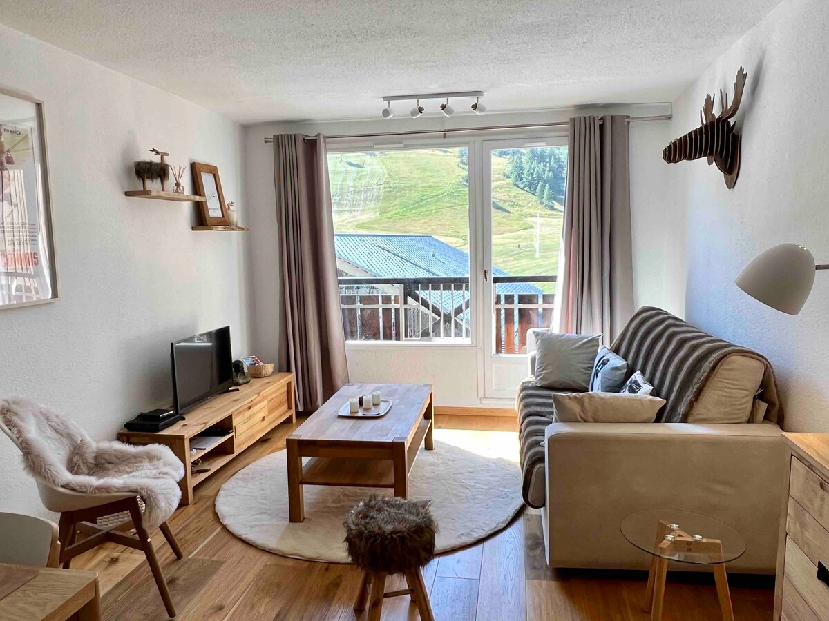 Повністю відремонтована розкішна студія 1860 року пропонує прямий доступ до схилів, що виходять на ESF. Ця студія преміум-класу площею 32 м² вміщує до 4 осіб. Завдяки своїм 32 кв. м, які ідеально оптимізовані, студія вміщує до 4 осіб завдяки теплій вітальні з диваном-ліжком та закритому гірському куточку з двоярусними ліжками, створеним як справжній кокон для дітей. Обладнана кухня, балкон з видом на схили, шафа для лиж та приватний гараж (за бажанням). Ідеально підходить для пар або сімей з дітьми.