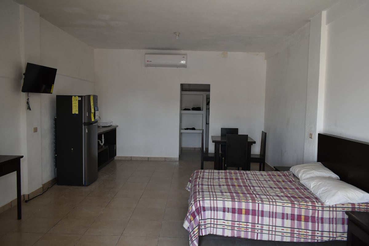 Відпочиньте з усією сім 'єю в цій красивій і повністю обладнаній квартирі, або, якщо ви займаєтеся бізнесом, це місце для відпочинку. У нас є кухня, вітальня, одна спальня, ванна кімната, кондиціонер, водонагрівач, Wi-Fi та кабельне телебачення.