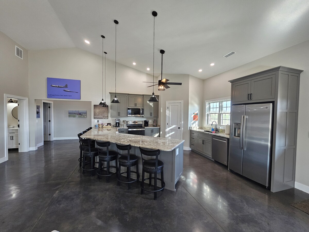 Втеча до красивого сільського Канзасу з цим просторим лофтом з 2 спальнями та 2 ванними кімнатами. У головній спальні є ліжко розміру King size і ванна кімната з душем. У другій спальні є ліжко розміру Queen size з ванною кімнатою та ванною з струменем. Заповнена сучасна кухня, бар і 2 обідні зони роблять це місце ідеальним для зустрічі з родичами або друзями. Робочий стіл і високошвидкісний Wi-Fi дозволяють комфортно працювати з лофта. Зовнішня зона має терасу, меблі для патіо та криту стоянку.