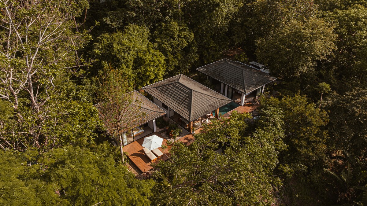 Новий розкішний курорт у Коста-Риці для відпочинку або пригод. Чарівне бунгало з меблями ручної роботи в декількох кроках від білих піщаних пляжів Тихого океану та найкращого серфінгу в Санта-Терезі. Дизайн під відкритим небом поєднує на відкритому повітрі з похилими стелями та великими розсувними дверима до вашого приватного саду та душу. Інтер 'єри мають заспокійливі нейтралі, натуральні матеріали та текстиль. Пориньте в навколишні джунглі або прогуляйтеся пляжем. Pura Vida in Paradise!