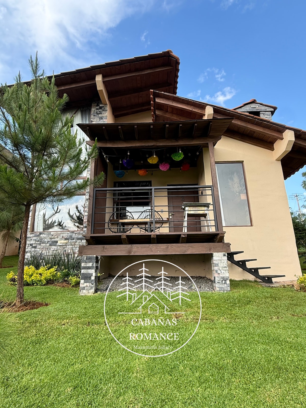Disfruta de una cabaña en el bosque totalmente equipada para que tu experiencia sea inolvidable. Consigue un descanso de lujo en sus colchones de calidad, diviértete en su terraza con asador y estufa, ten una noche romántica en su terraza con chimenea. Deja que tus hijos corran y rían en la explanada jugando en la casita infantil y quemen bombones en su fogata. Ubicada dentro de la seguridad del fraccionamiento Los Cazos con acceso a La Cascada El Salto.