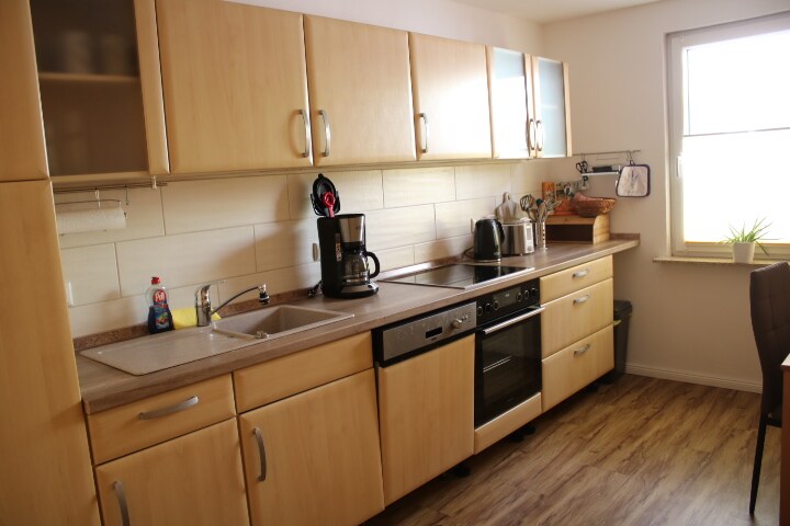 Die Wohnug ist sehr gemütlich eingerichtet. Es können bis zu 4 Pesonen untergebracht werden. Das Schlafzimmer mit Doppelbett und Kleiderschrank. Kinderzimmer mit Bett und Kleiderschrank. Stube mit Fernseher und Schlafcouch. Nutzung des W-Lans ist Kostenlos. Im Flur steht ein zusätzlicher Schrank. Im Bad befindet sich eine Wanne. Die Küche ist sehr gut ausgestattet. In der Nähe von IFA, Hermes, Euroglas, Banhof, Busbahnhof, Einkaufsmöglichkeiten. - Nichtraucher - keine Kinder unter 12