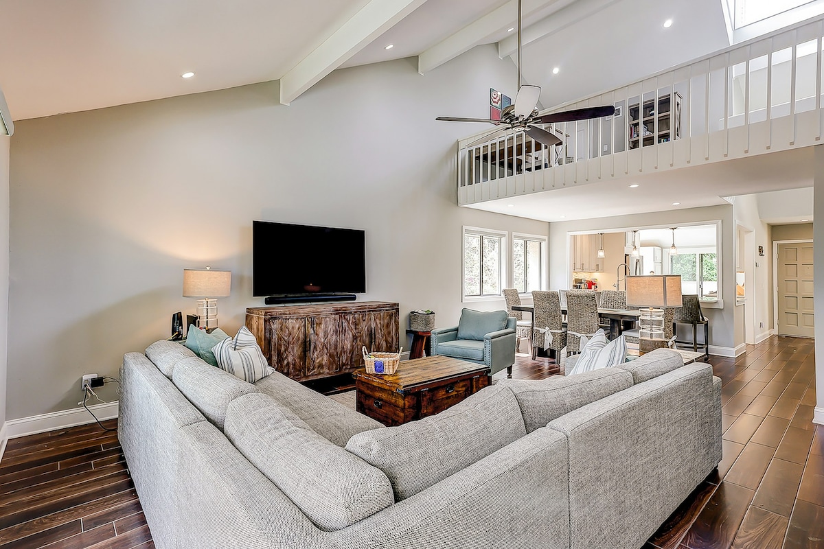 Gated Beach & Golf Resort! ✨ Top 10% Airbnb Guest Favorite ✨ Beach, Golf, Pool, Spa, Restaurants & Bars FREE Pickleball & Tennis – across the street HGTV Decorator designed Panoramic Golf & Lagoon Views! Big Porch Huge Old Oak trees! Coastal Décor Sunny 1st Floor End Unit KING BED + 2 QUEENS 3 XL SmartTVs FREE: FAST WIFI & CABLE Marble Kitchen Washer/Dryer Beach Cart, Chairs, Boogie Boards, Ice Chest BBQ Walk & Bike Path to Beach! Walk to Golf Club & Pub Close to Coligny Summer Beach Shuttle