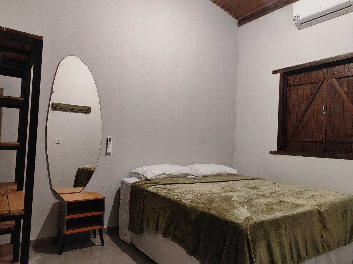 Ексклюзивне місце відпочинку посеред природи, усього за 5 км від села Сан-Жорже — поруч із ринками, ресторанами та входом до національного парку, але в умовах абсолютної тиші та приватності. Панорамний краєвид на захід сонця, комфорт і спокій у затишній обстановці. Люкс із двоспальним ліжком і висувним ліжком, власною ванною кімнатою, Wi-Fi та телевізором. Ідеально підходить для пар і невеликих сімей, які прагнуть відпочинку, природи та ексклюзивності в Шападі.