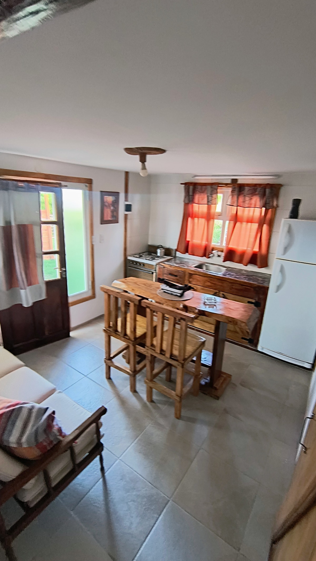 Vivi el campo y el mar a 400 metros de la playa Cruz del Sur. Disfrutá de un entorno natural y relajante. Se trata de una casa modular que construimos para disfrutar en familia y que decidimos alquilar en épocas de año en las que no la usamos. Posee un dormitorio con cama matrimonial que puede transformarse en 2 singles, una cocina totalmente equipada y un living con sillones y salamandra para la cual dejamos leña disponible. En el dormitorio hay una estufa. Cuenta con servicio de wifi.