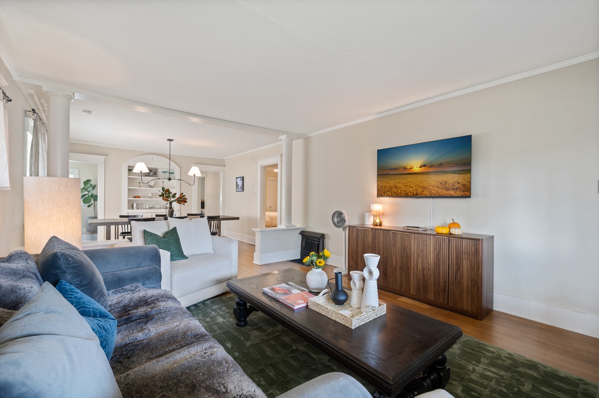 Прогулюйтеся до Лонг-Біч із цього відремонтованого бунгало 1920 року і насолоджуйтеся кількома прибережними атракціонами: від ресторанів і велосипедних доріг до багатокілометрового піщаного пляжу. Повертайтеся додому в затишний оазис з вишуканими меблями та приготуйте швидку страву на стильній кухні з мармуровими стільницями. Відпочиньте на зручному класичному ліжку розміру «king size», «queen size» або двоярусному ліжку. Щоб провести чарівну ніч, запаліть багаття на задньому дворі та насолоджуйтеся спогляданням зірок на свіжому повітрі, а феєричні вогники освітлюватимуть ваш приватний двір.