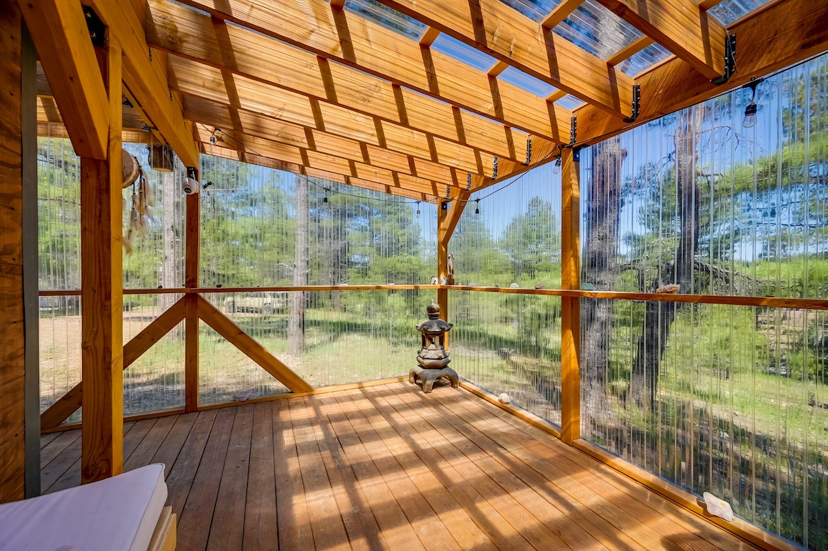 [Обов’язкове підписання відмови від відповідальності після прибуття.] Цей притулок площею 8 акрів не підходить для дітей віком до 18 років через природний рельєф місцевості, доступ до річки та круті скелі. Без собак (тільки ADA) Eagle Eye – це кедрова сауна, перетворена на люкс, розташована на вершині вапнякової скелі з видоможливим видом на чарівну затону, що пропонує унікальний і захоплюючий досвід, як ніде інде. Завдяки вогнутому вікну, що обрамляє схід сонця, гості можуть насолоджуватися видом на природу з першого ряду. 🦅👁️