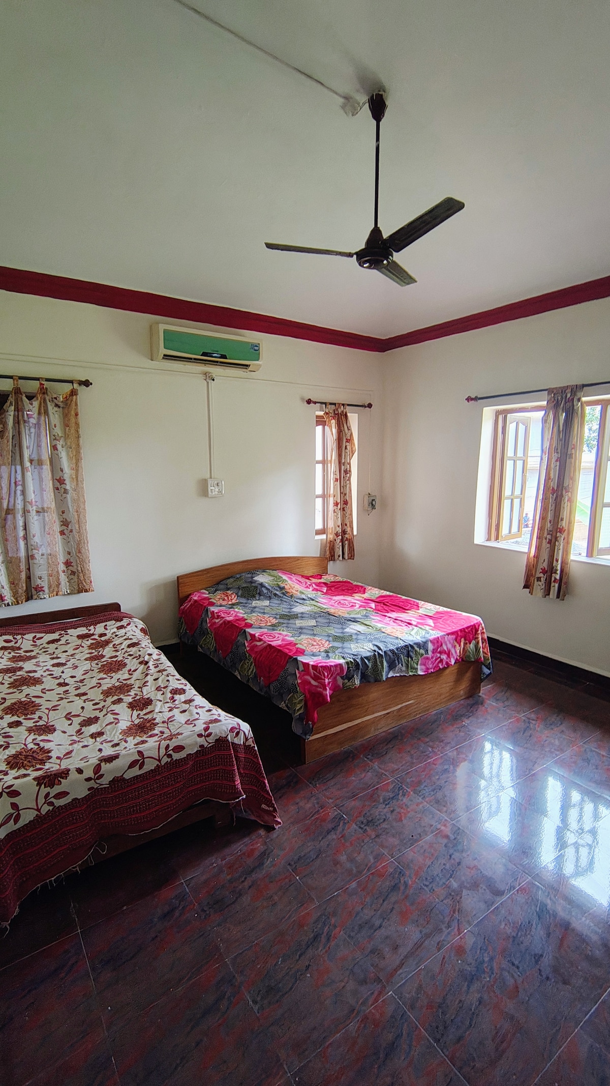 Our spacious 2-bedroom, 2-bathroom Airbnb nestled is in the midst of the tropical sanctuary of Goa. Relax in the cozy living area, whip up delicious meals in the fully equipped kitchen. Our AC rooms promise a restful slumber with soft linens, comfortable and air-conditioned bedrooms. Step onto your private balcony for scenic views of lush greenery. With the beach at a 5 min walk, from beachside dining to perfect sunsets, your perfect Goan getaway awaits. Book now at a Steal Deal price!