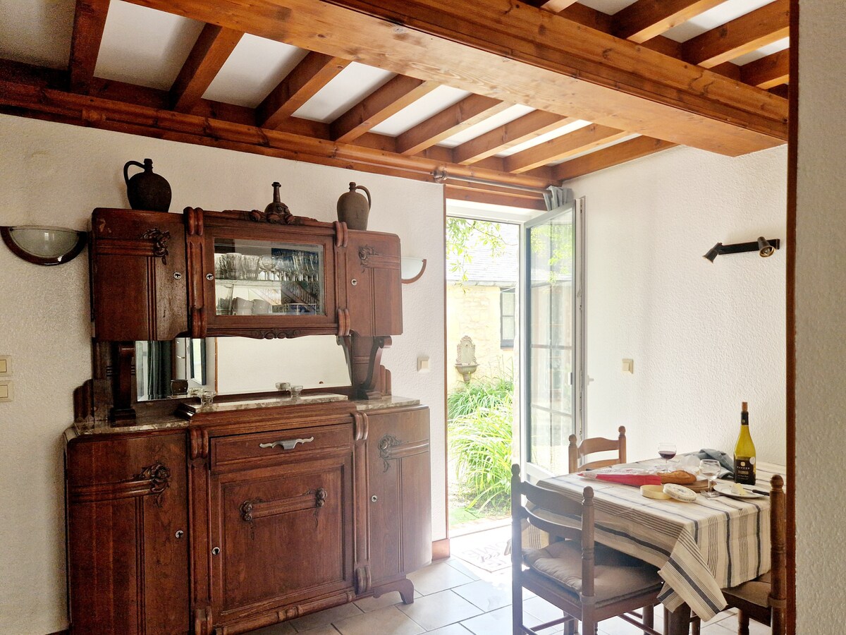 Близько до Байє та пляжів висадки. Старий сарай перетворений на котедж із приватним садом. Ми розташовані на маршруті морського велосипеда та GR 223. Вам сподобається зелена та тиха обстановка. У помешканні можуть розміститися 5 осіб. Ігрова зона у вашому розпорядженні: батут, гойдалка, стіл для пінг-понгу, гірка. Ресторан за 50 м. Зарядна станція за 300 м Магазини, аптека, заправка за 2 км. 15 хвилин від пляжів Арроманш і Омаха.