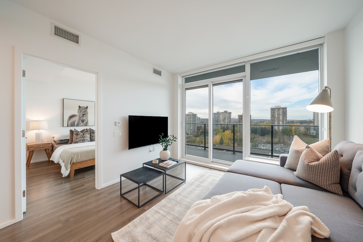 Приготуйтеся до мрійливого відпочинку в цьому новому затишному кондомініумі! •Двоспальне ліжко в спальні - простора шафа та неймовірні краєвиди з кожної кімнати! •Диван-ліжко для 2 осіб у вітальні та інтелектуальний телевізор •Безкоштовна підземна парковка для 1 особи •Повна ванна кімната. Для вашої зручності передбачені базові туалетно-косметичні засоби •Повністю обладнана кухня, кофемашина та необмежена кількість капсул •Близькість до поїзда Skytrain, приблизно в 10 хвилинах ходьби. •Прямо біля центру Lougheed - великого торгового центру з великою кількістю магазинів і ресторанів!