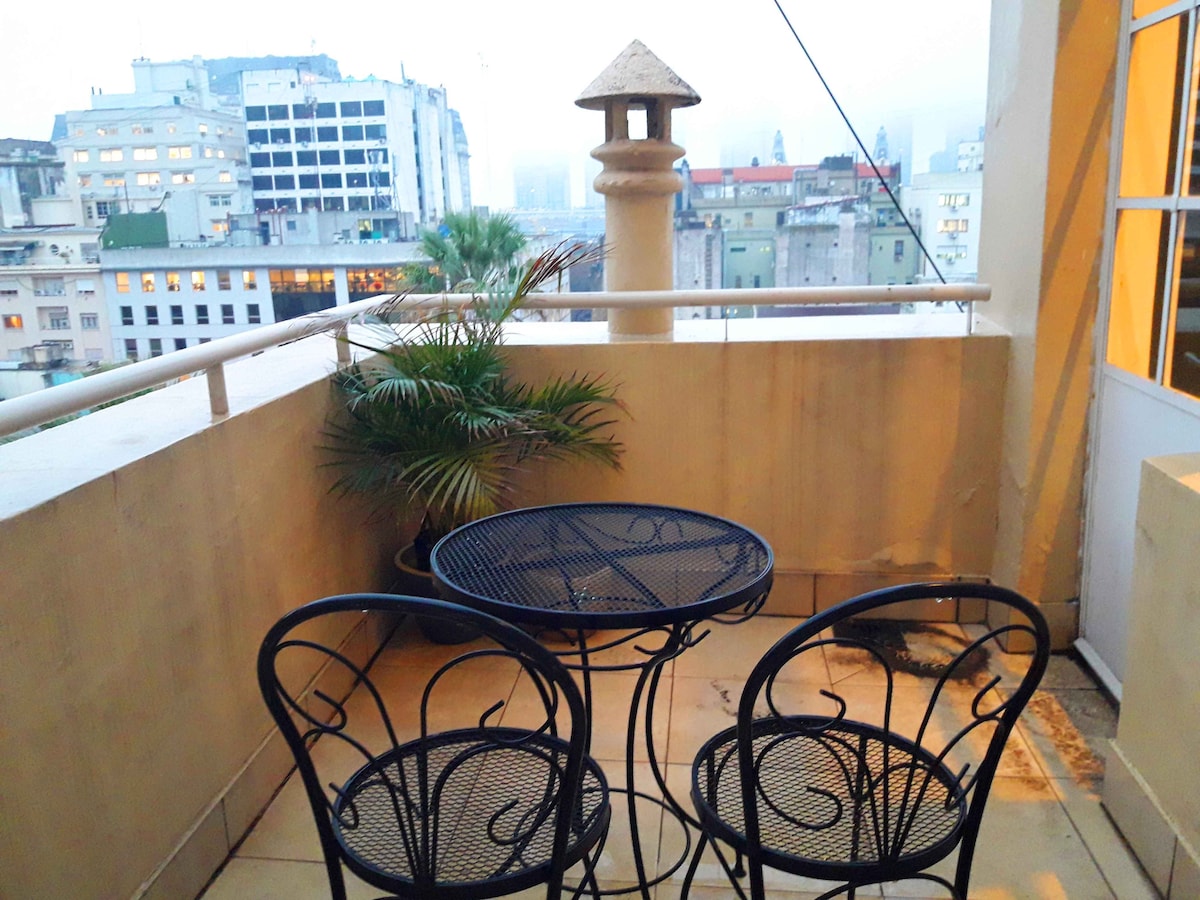 Modern apartment on the 14th floor with an incredible view of the center, the Río de la Plata, Puerto Madero and La Boca. 200 meters from Plaza de Mayo, Casa Rosada, the Cathedral, the Cabildo, 100 meters from all metro and bus lines that connect with the entire city. A few meters from San Telmo, Puerto Madero and the meeting points of the Free Walking Tours and the BA Sightseeing Bus. Close to a wide variety of restaurants, theaters and historical shops.
