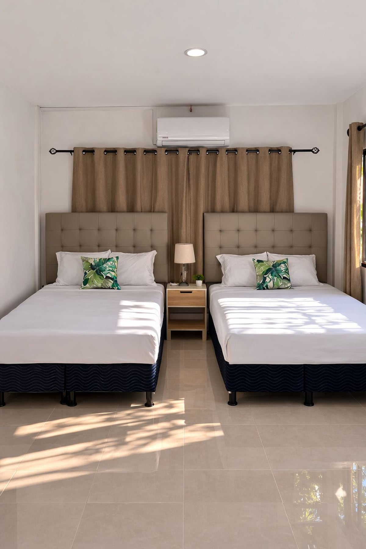 Disfruta de una estancia cómoda en habitaciones modernas con camas grandes, baños completos, aire acondicionado, Smart TV y agua caliente. Somos Milo’s Hostel & Residences, tendrás acceso a piscina, cocina compartida y áreas sociales. Perfecto para descansar cerca de Todo, restaurantes y puntos turísticos de Santa Ana.